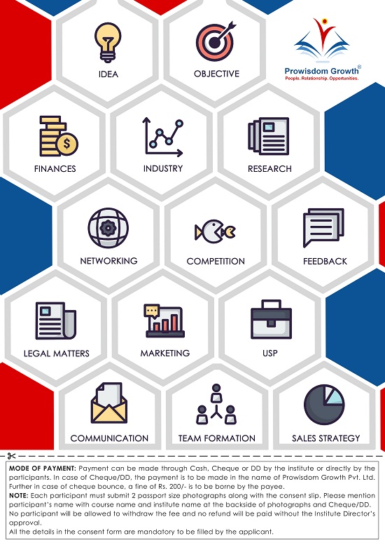 The Program imparts essential knowledge of how to start a business venture, the various facets that influence successful set-up & operations.