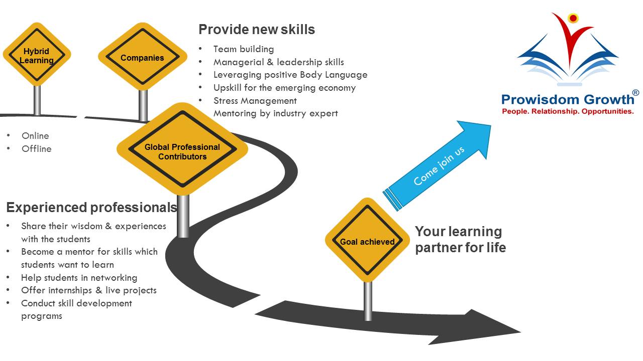Prowisdom Growth connects aspiring professionals and students of schools, colleges across India to some of the most experienced and knowledgeable global academicians and corporate executives of the industry in India and across the globe. This is a platform to connect, learn, collaborate, strengthen peer to peer learning across geographies, thus creating economic value for its subscribers and their family.